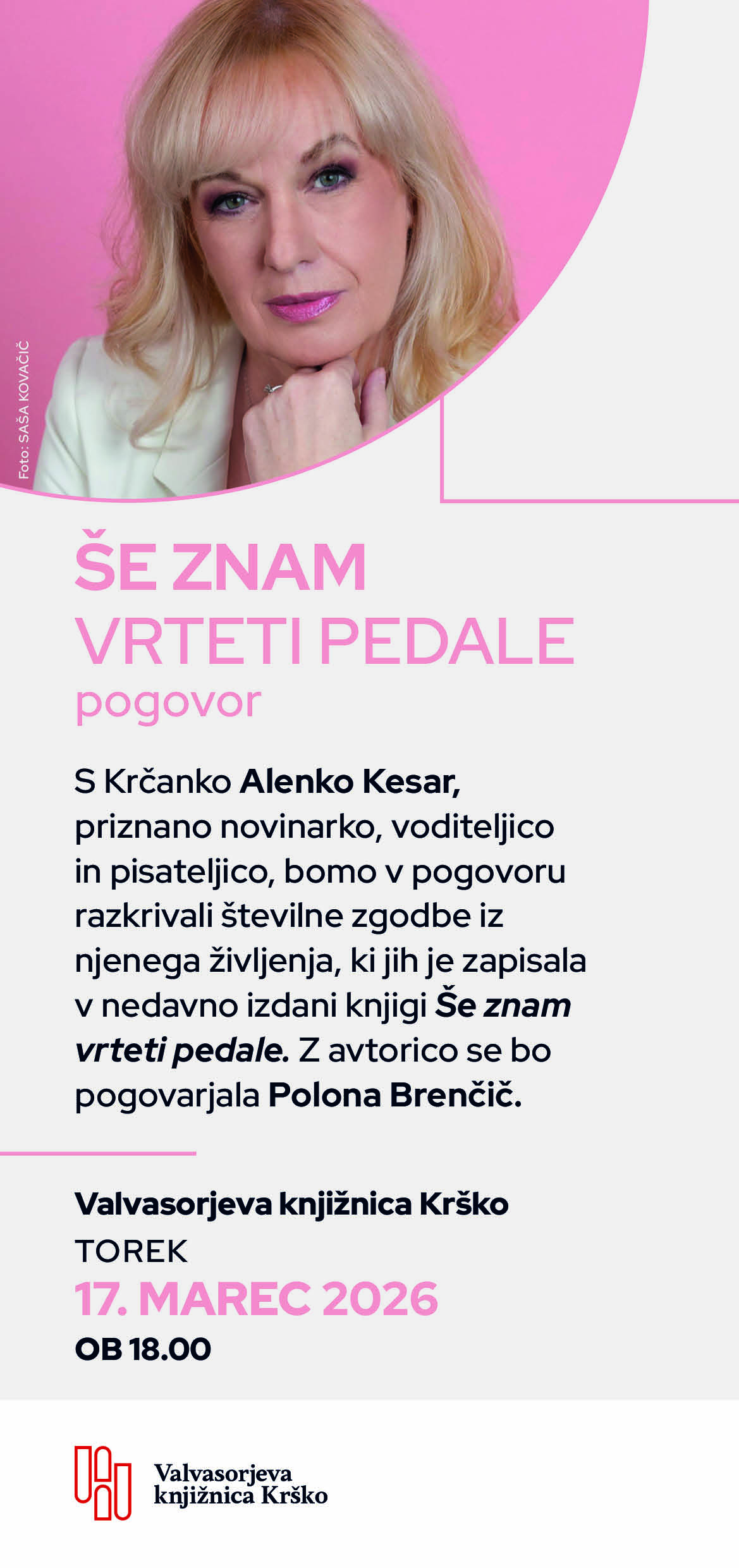 razkrivali številne zgodbe iz njenega življenja, ki jih je zapisala v nedavno izdani knjigi Še znam vrteti pedale. Z avtorico se bo pogovarjala Polona Brenčič.