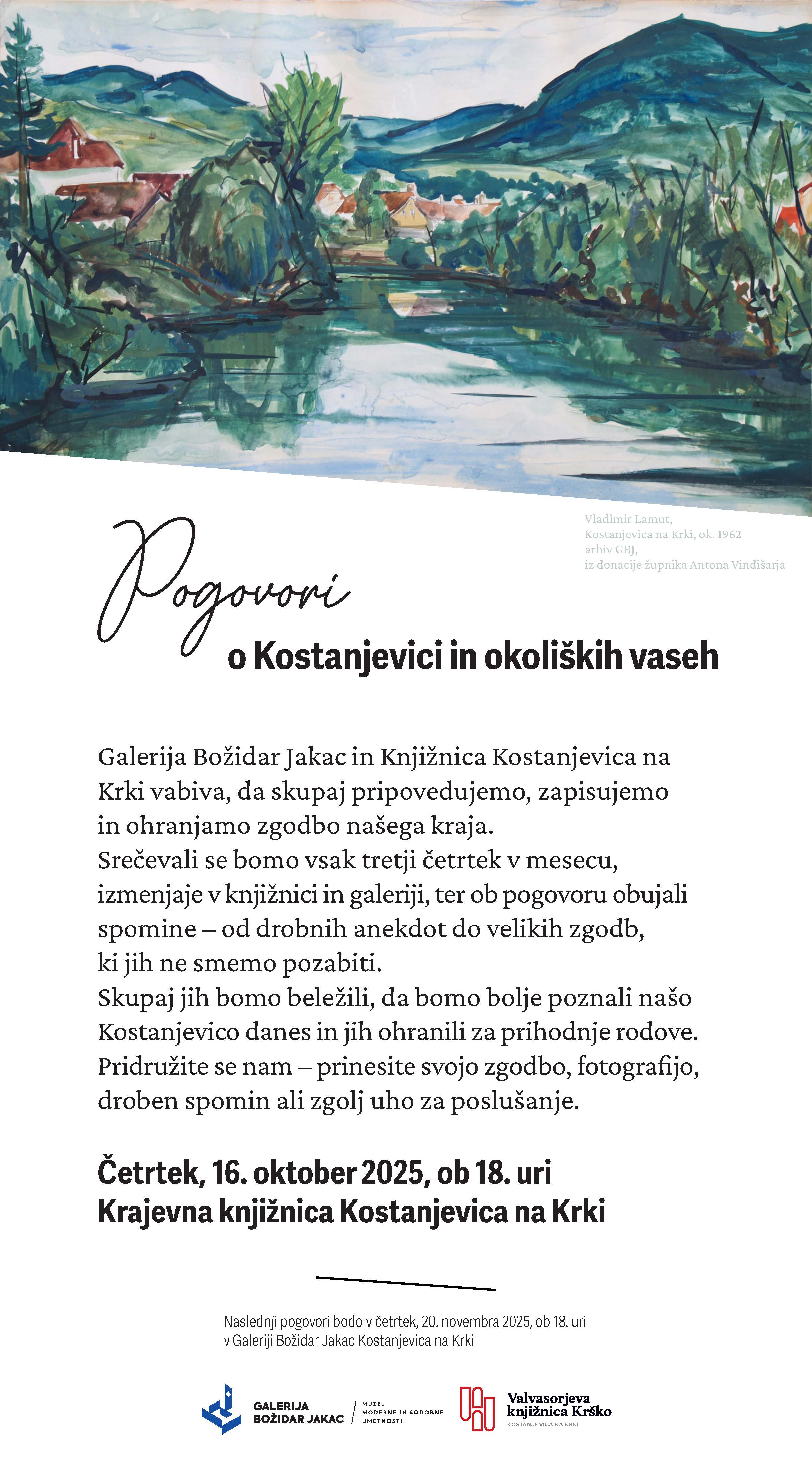 Naslednji pogovori bodo v četrtek, 20. novembra 2025, ob 18. uri v Galeriji Božidar Jakac Kostanjevica na Krki