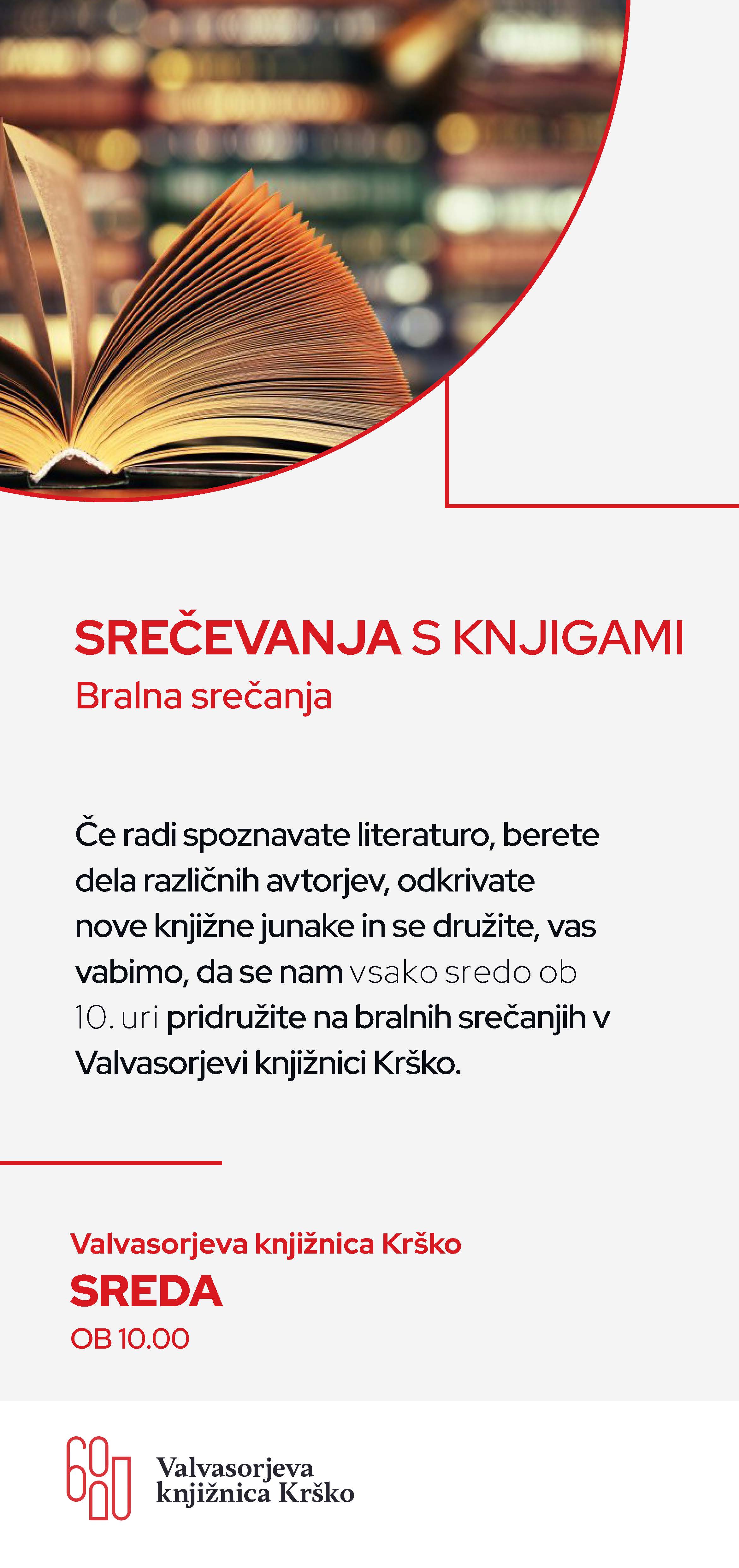 Če radi spoznavate literaturo, berete dela različnih avtorjev, odkrivate nove knjižne junake in se družite, vas vabimo, da se nam vsako sredo ob 10. uri pridružite na bralnih srečanjih v Valvasorjevi knjižnici Krško.